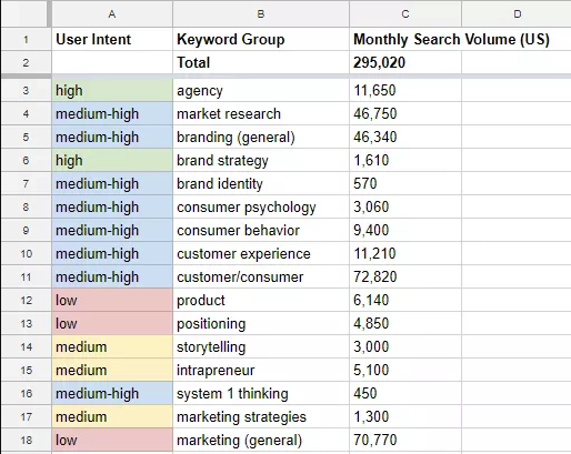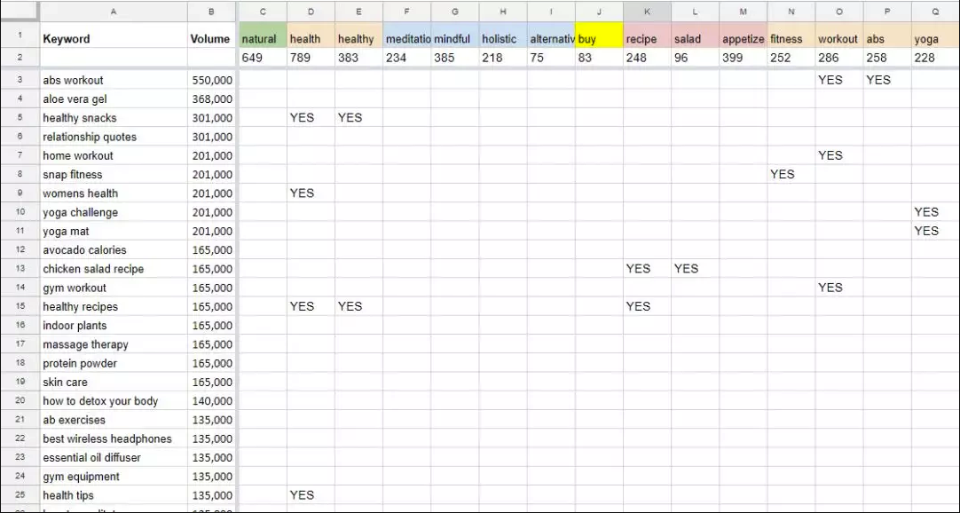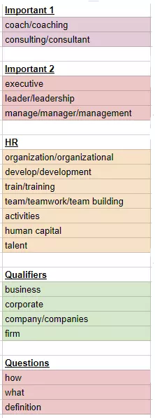 当我们一直拆分一个关键词组时,到了最后,我们会剩下很多不同的关键字组。如果您的关键词组太广泛,您可以把它们细分为更窄的关键词子组,来获得更为集中的内容词。