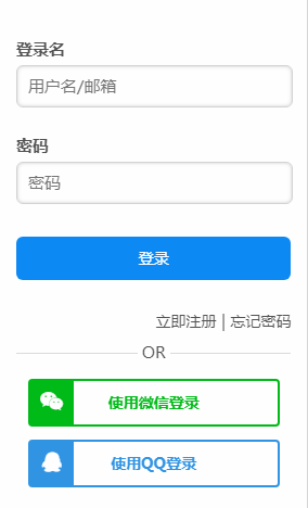 QQ、微信登录风格二,应用效果如下图所示:
