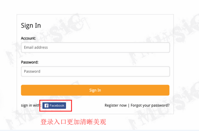 Facebook登录风格三,应用效果如下图所示: