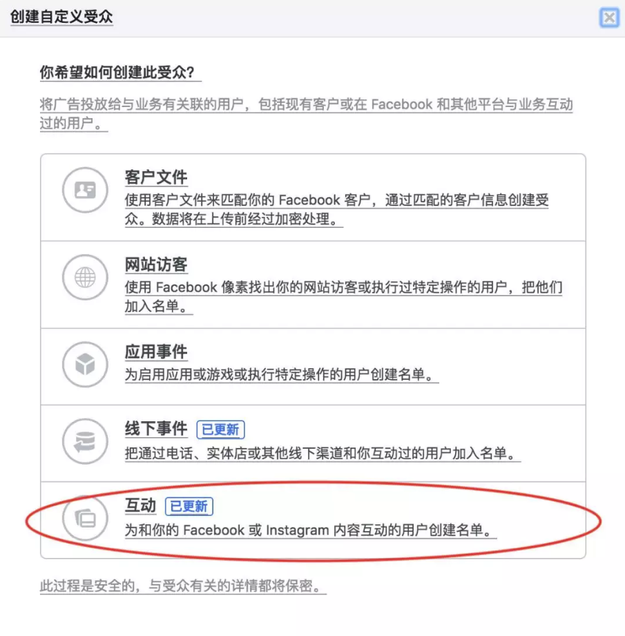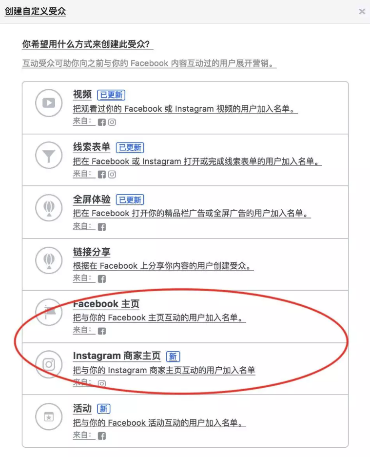 如果Facebook客户点赞你的主页或者是跟你发的内容进行了互动,他们极有可能对你的品牌,产品或是服务感兴趣。 如果你的粉丝主页以运营到有一定数量的粉丝,那么这时你可以建立Facebook主页上的自定义受众。 如果你一直专注经营粉丝主页的内容,那么这些点赞主页的客户质量就会很高。将有大部分的粉丝需要你去重视。每当你有新产品时不妨先推给他们。