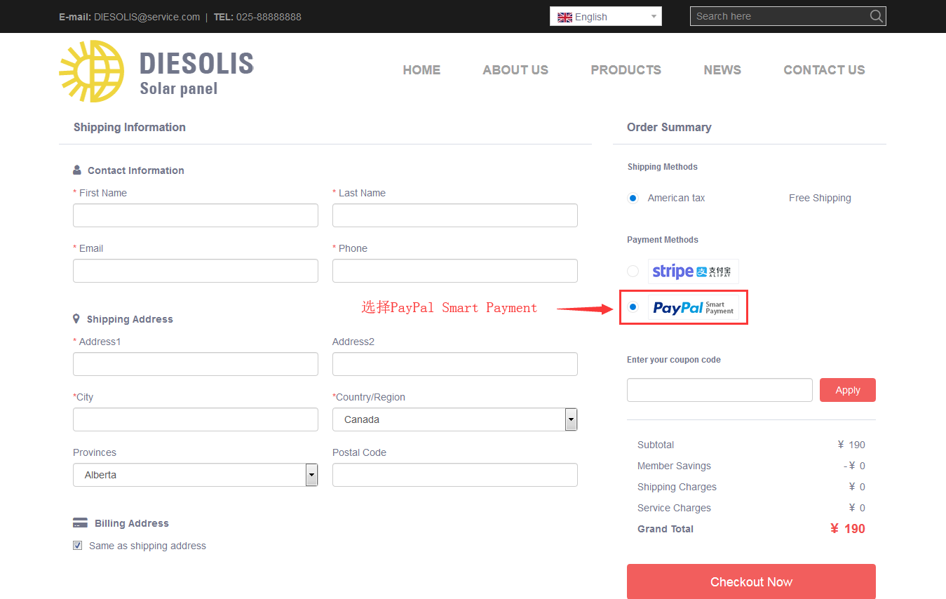2.3.完成后访客在网站前台购物时,即可选择“Smart Payment Button”支付方式,如下图所示: