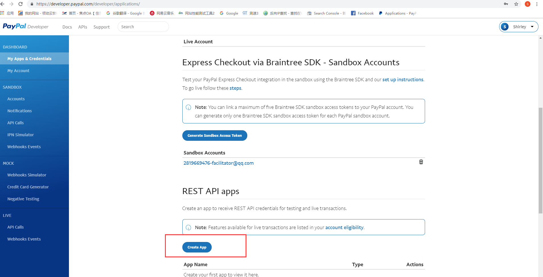 1.2.点击链接:https://developer.paypal.com/developer/applications,登录paypal developer,创建REST API apps