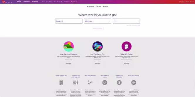 当所有航空公司网站都充斥着各种可用功能的时候,美属维尔京推动了网站的易用性,访问性和自适应性设计的前进。实际上,它被称作为第一个真正的响应式航空公司网站。