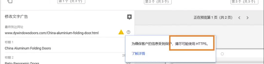 使用Google Ads,这是增加你网站上的流量主要方式之一。目前Google Ads账户后台,已经明确给出建议,建议广告着落页最好使用Https开头的网址,对于没有安装ssl证书的客户,投放广告可能会存在拒登风险。
