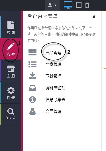 1、单击”内容“---》”产品管理“,默认进入”产品管理“页面;