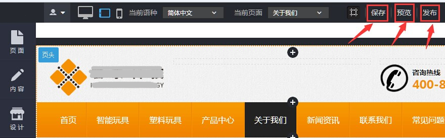 设置好以上内容以后要单击页面右上角的“保存”按钮,目的是把此修改保存到网站后台;