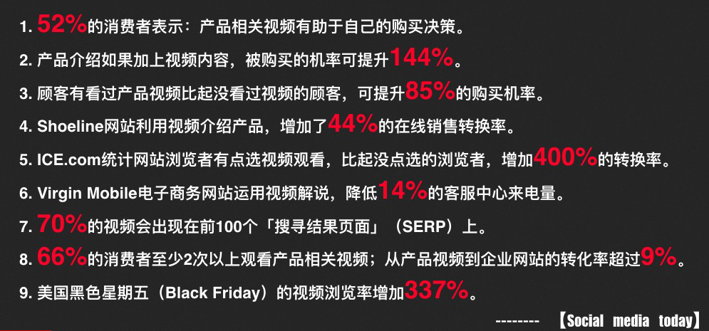 数据证明,视频营销对企业来说已经愈发重要,一个成功的视频营销带来的效果是不可估量的,不但完成了品牌形象的塑造与传播,更直接带动了产品的销售,用户在短时间内充分的了解到我们的品牌与产品,记忆深刻。