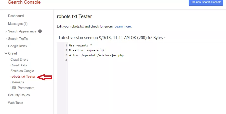 转到Google站长的爬行部分,并单击 robot.txt Tester。